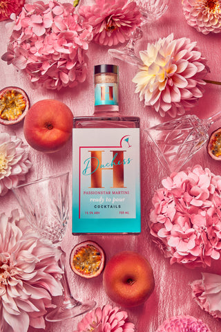 Duchess H PassionstarMartini is more than just a cocktail, it's pure fun. A perfect blend of DuchessH Peach & Passionfruit Gin Cup it is loaded with sweet, tart, and tropicalfruit, a silky and indulgently luxurious flavour explosion. Layered withvelvety vanilla notes & accompanied with a background of prosecco, adding arefreshing effervescence to your cocktail experience. Duchess H Passionstar Martini adds atouch of cheeky fun to every sip.