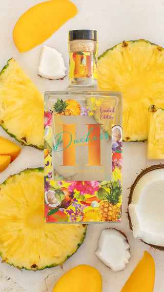 Duchess H SUMMER ESCAPE Gin Cup is mouth-wateringly refreshing and delectable. If you like PINA COLADAS or just getting caught in the rain, then you will be able to close your eyes and imagine the sun on your skin as you sip the afternoon away. Be surprised and delighted with the fruit forward aromas of PINEAPPLE, MANGO & COCONUT whilst enjoying the subtlety of Lady H Gin throughout